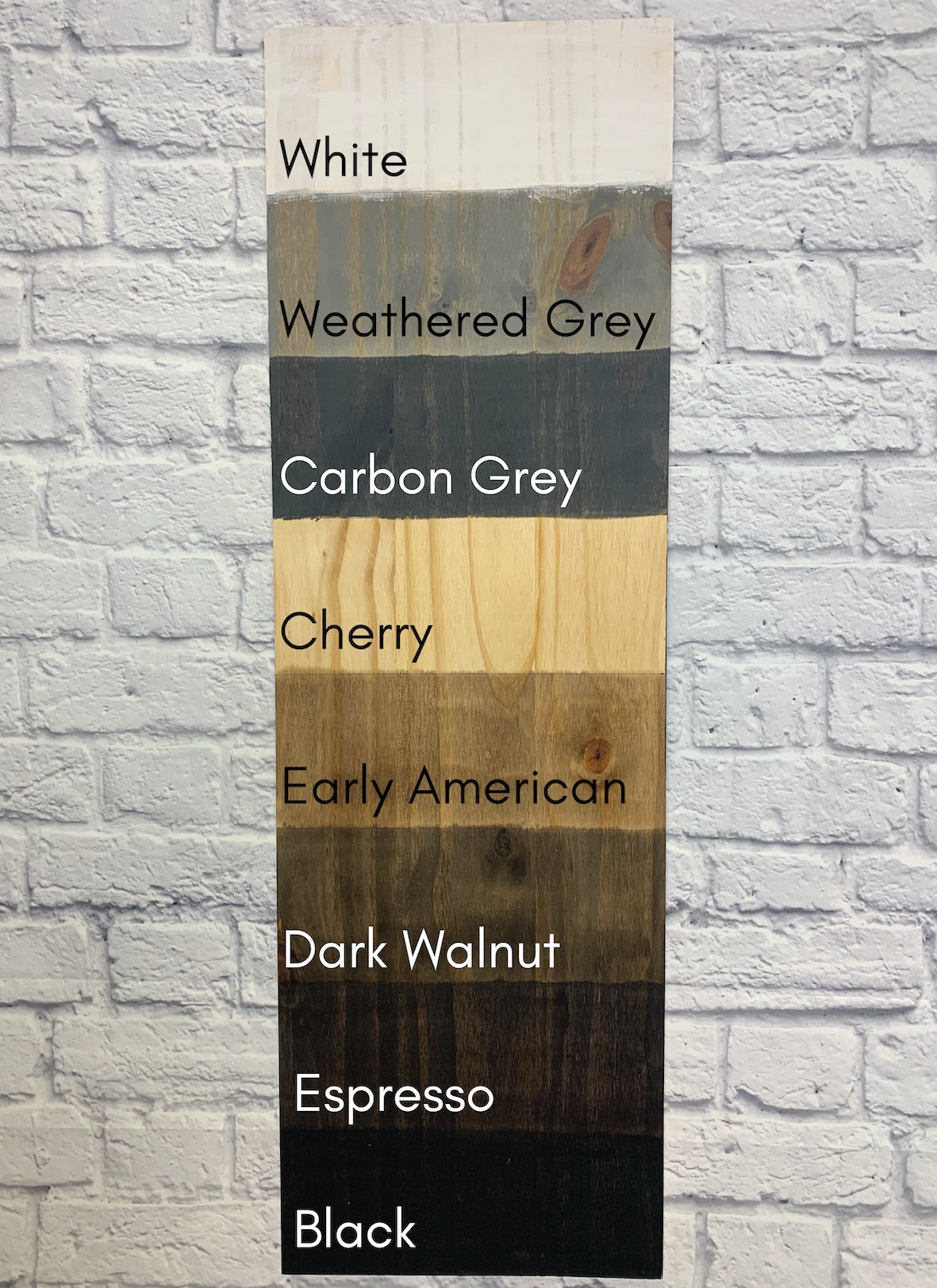 Board is approx 60x8" and stained to your preference. (Shown in dark walnut)
